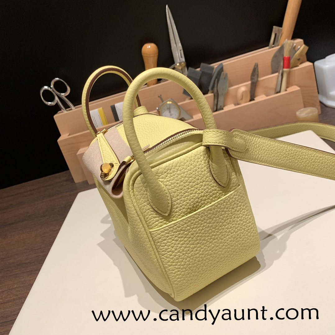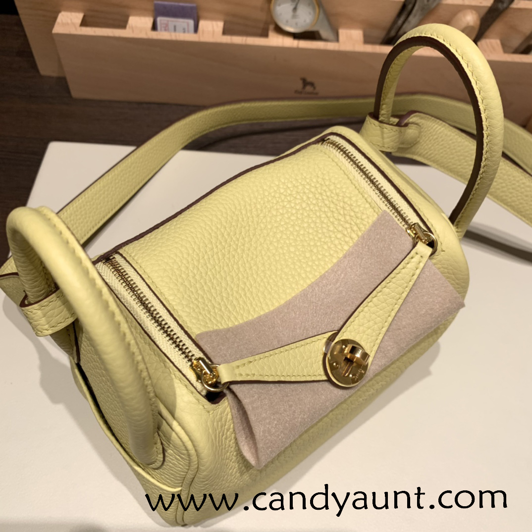 Hermes Mini Lindy Clemence 1Z /Jaune Poussin Gold Hardware 100